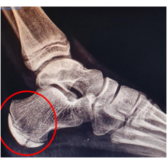 En la imagen vemos un SERVER u osteocondrosis en el calcáneo.
